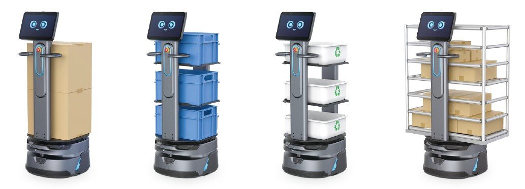 輕鬆運載大宗貨物、重型零件和大型庫存品。有效負重淨值高達 100 公斤。 靈活的搬運附件,無論是散裝零件還是完整的包裝箱,機器人均可精確細心處理每一次的遞送。