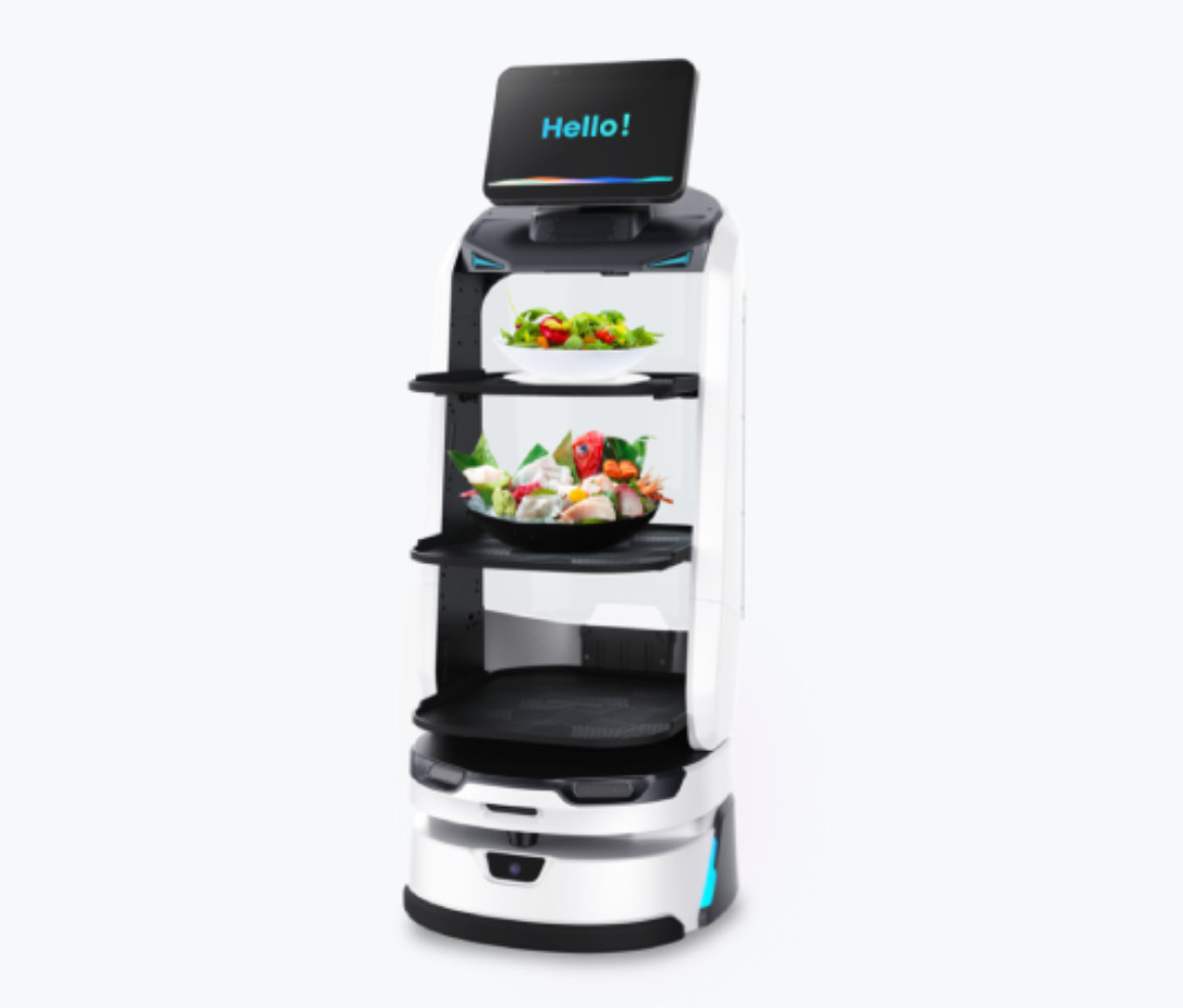 新一代遞送機器人"LuckiBot Pro"配有行業獨家的菜品識別攝影機、360° 環繞智慧氣氛燈和 14 吋超大高清螢幕,底盤採用扭桿阻尼懸掛方案,保證它優秀的遞送能力以及場景適應能力,帶給用戶無與倫比的人機交互體驗。